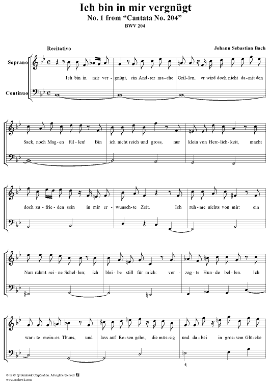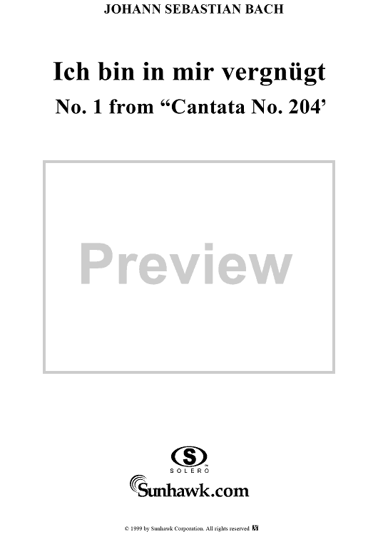Digital Sheet Music for Ich bin immer vergnügt - No. 1 from "Cantata No. 204" - BWV204 by Johann Sebastian Bach scored for Voice/Piano; id:265880