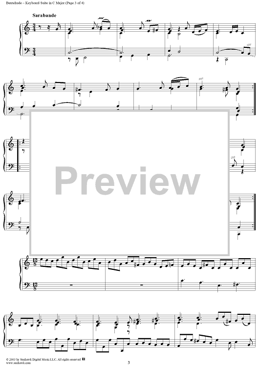 Digital Sheet Music for Keyboard Suite in C Major (B227) by Dietrich Buxtehude scored for Piano Solo; id:294492