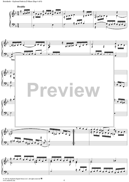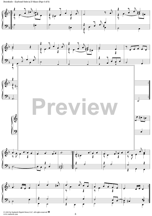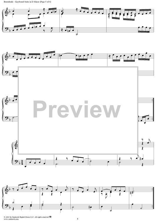 Digital Sheet Music for Keyboard Suite in D Minor (B234) by Dietrich Buxtehude scored for Piano Solo; id:294497