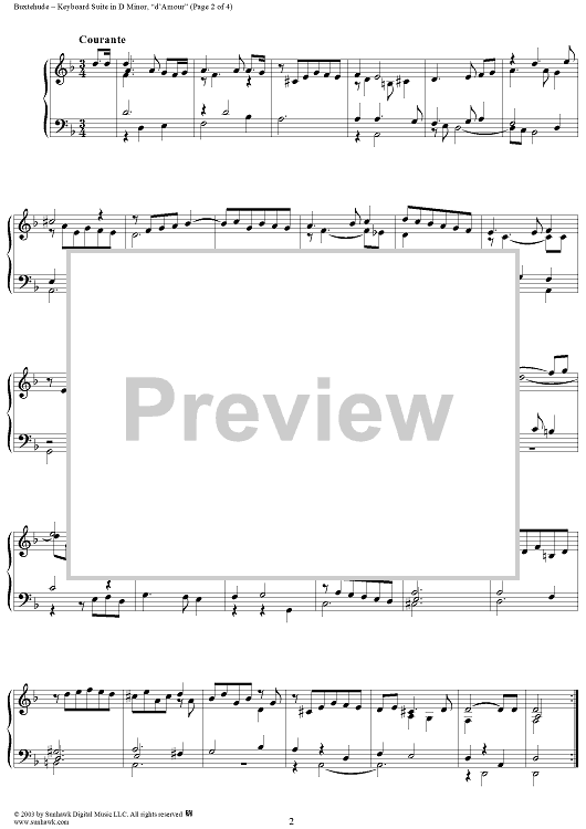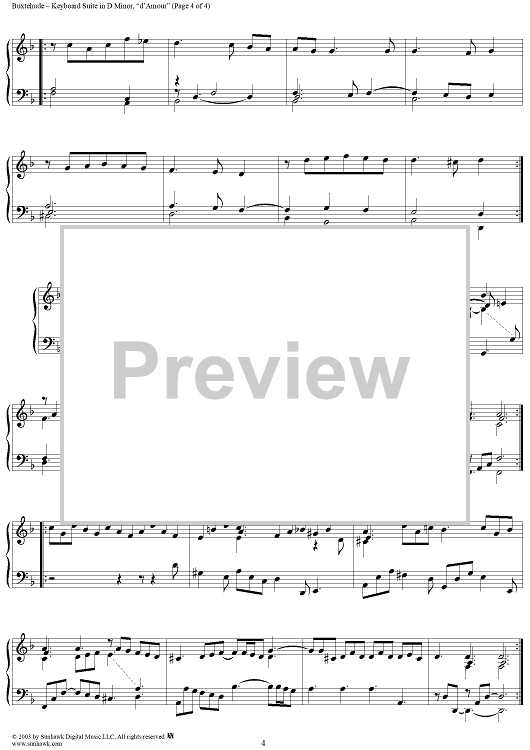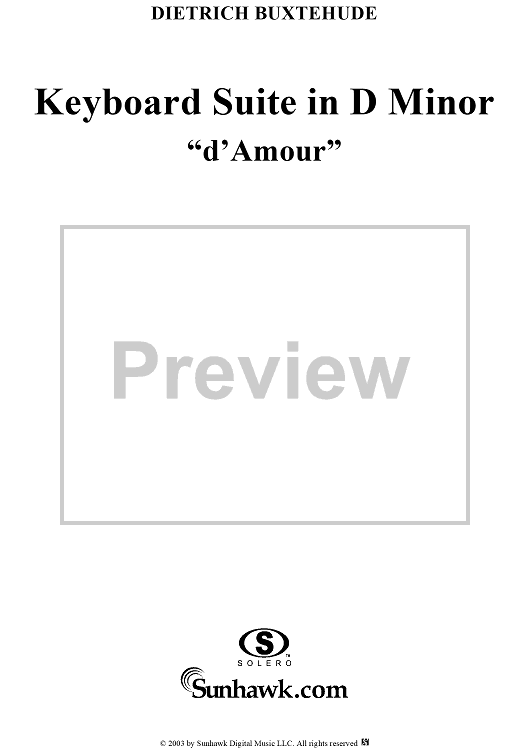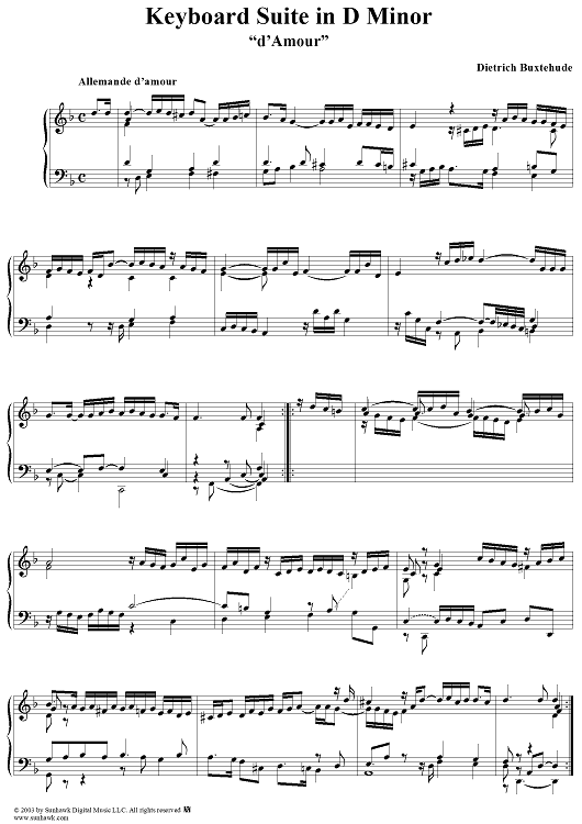 Digital Sheet Music for Keyboard Suite in D Minor, "d'Amour" (B233) by Dietrich Buxtehude scored for Piano Solo; id:294496