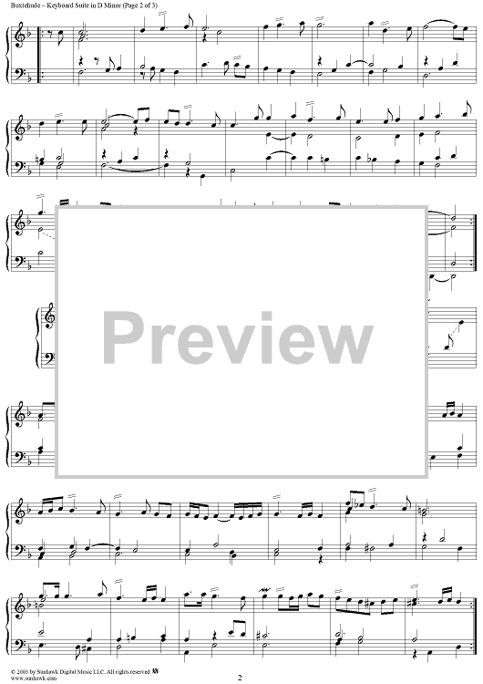 Digital Sheet Music for Keyboard Suite in D Minor by Dietrich Buxtehude scored for Piano Solo; id:294513