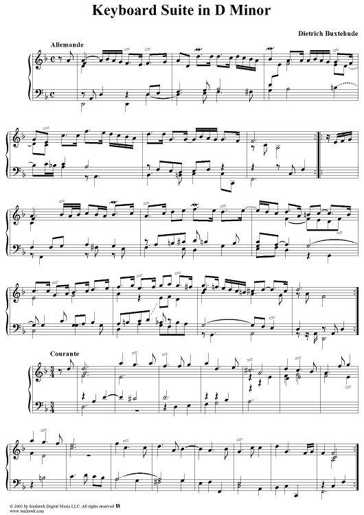 "Keyboard Suite in D Minor" Sheet Music by Dietrich Buxtehude