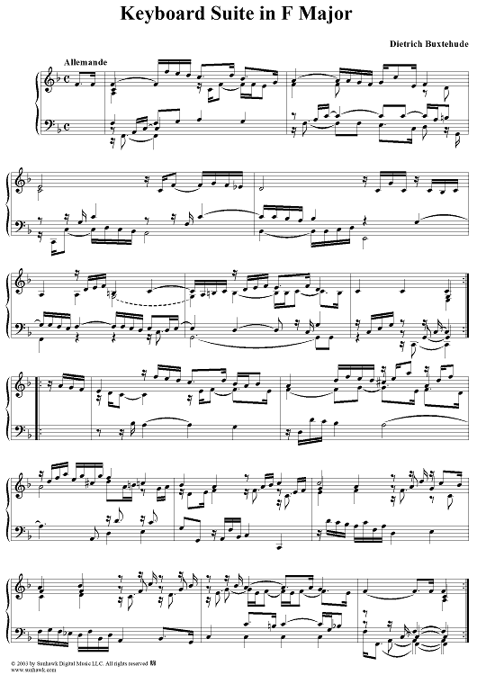Digital Sheet Music for Keyboard Suite in F Major (B238) by Dietrich Buxtehude scored for Piano Solo; id:294509