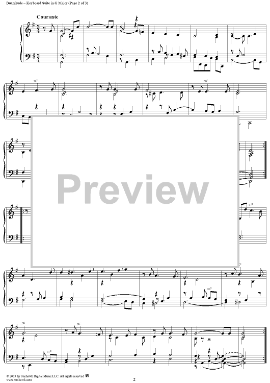 Digital Sheet Music for Keyboard Suite in G Major (B240) by Dietrich Buxtehude scored for Piano Solo; id:294514