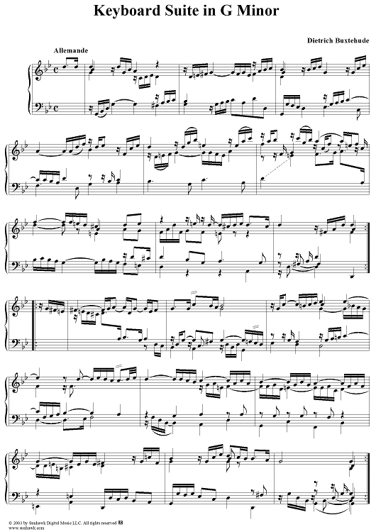Digital Sheet Music for Keyboard Suite in G Minor by Dietrich Buxtehude scored for Piano Solo; id:294510