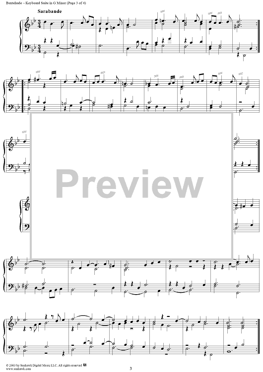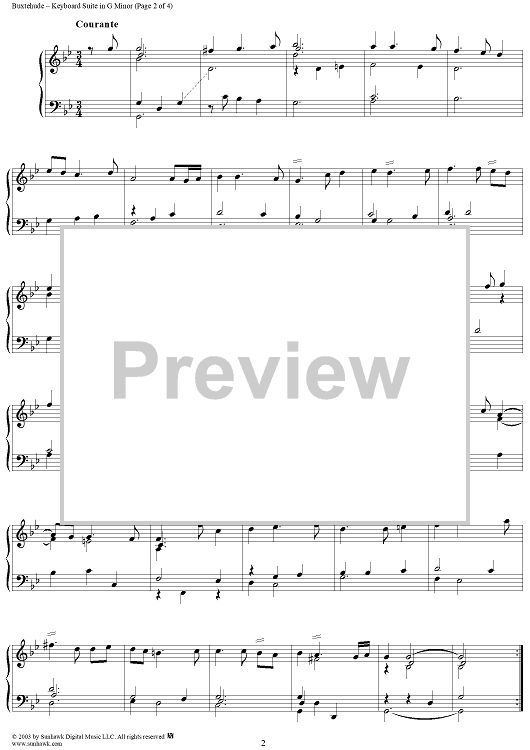 Digital Sheet Music for Keyboard Suite in G Minor by Dietrich Buxtehude scored for Piano Solo; id:294512