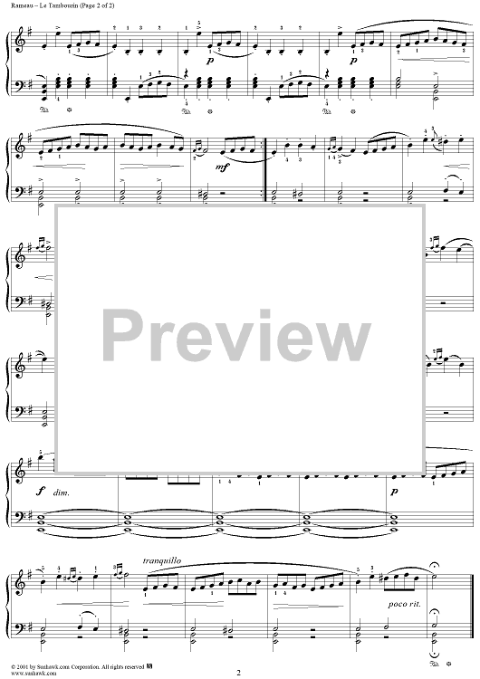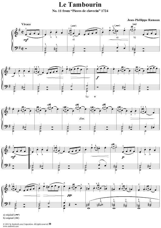 Digital Sheet Music for Le Tambourin, Gavotte, No. 11 from "Pieces de Clavecin" by Jean-Philippe Rameau scored for Piano Solo; id:255242