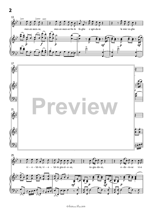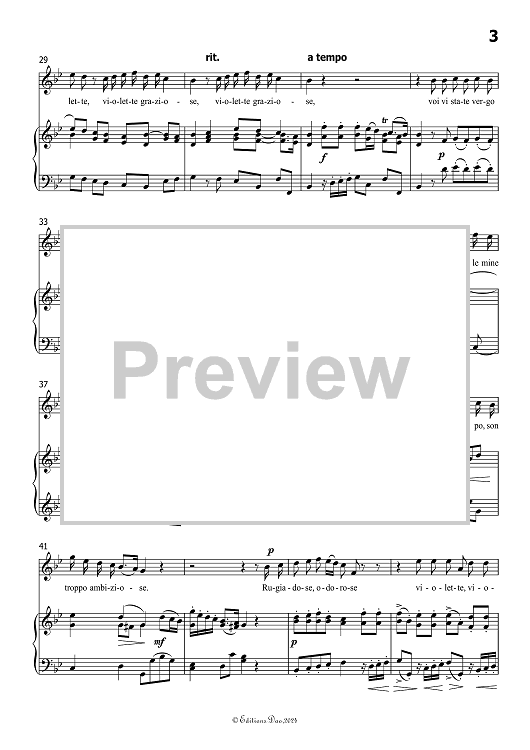 "Le Violette" from 'Pirro e Demetrio' in B flat Major, for Voice and Piano