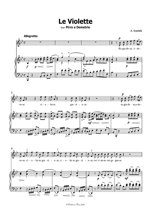 "Le Violette - from Pirro e Demetrio" Sheet Music by Alessandro Scarlatti