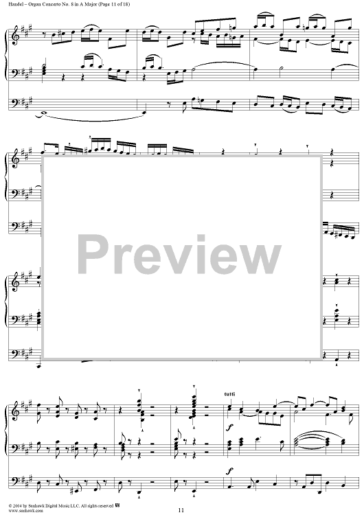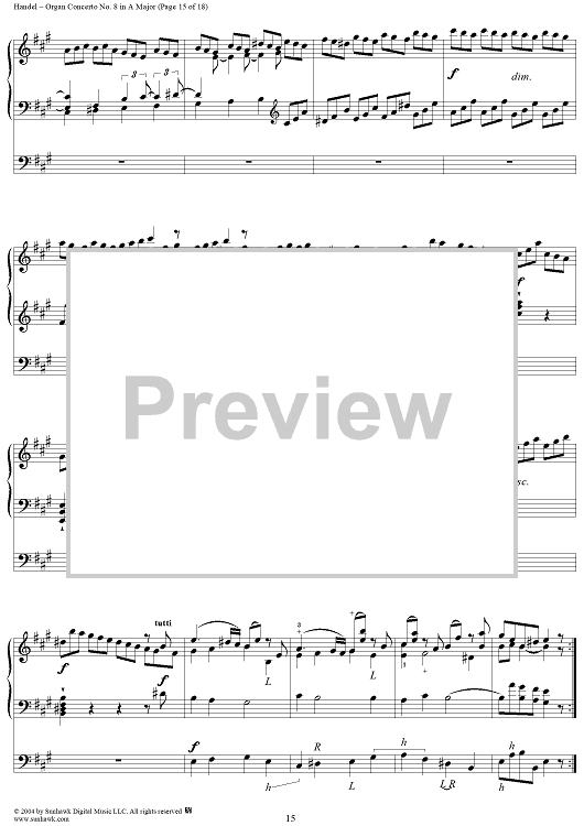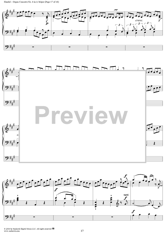 "Organ Concerto No. 8 in A Major" Sheet Music by George Frideric Handel