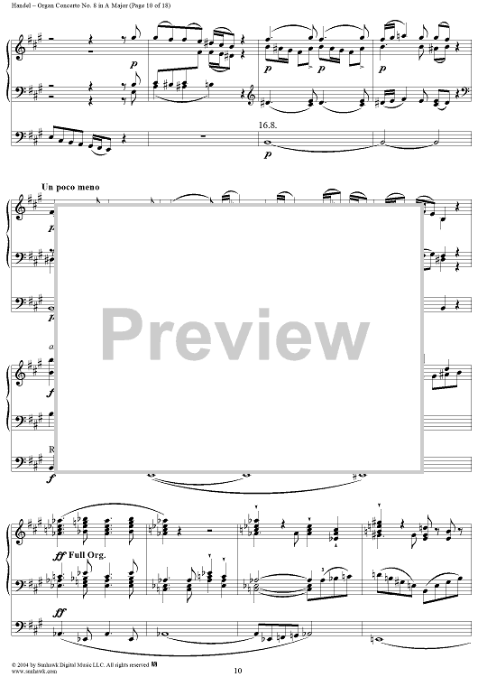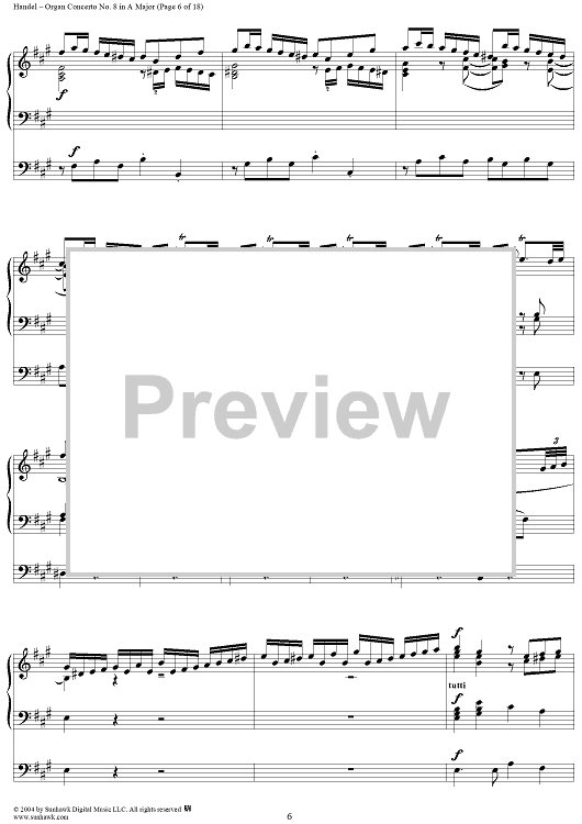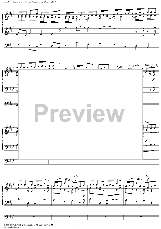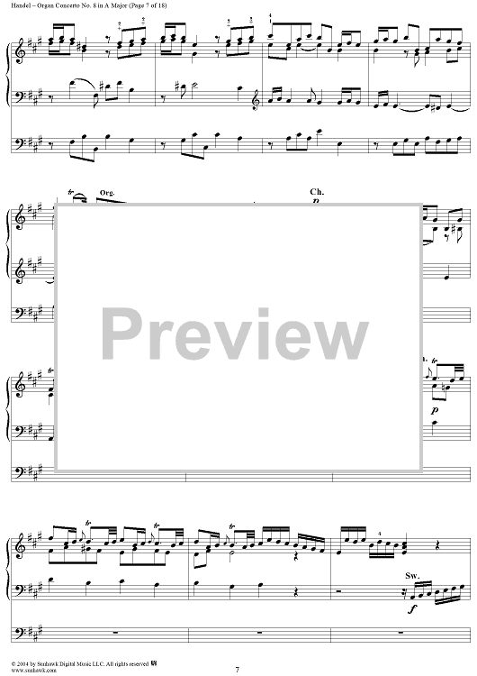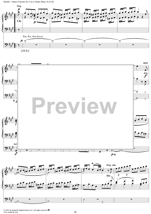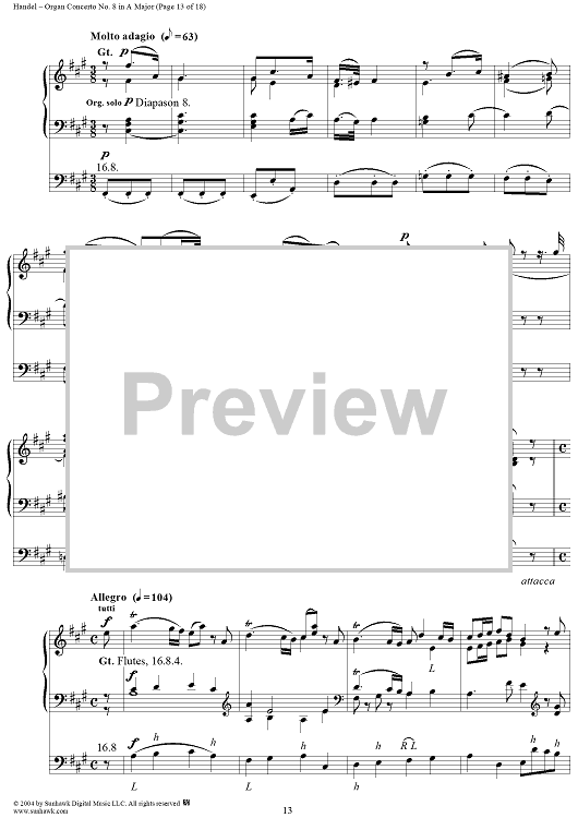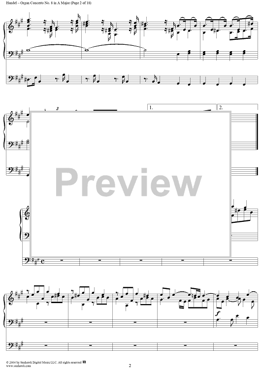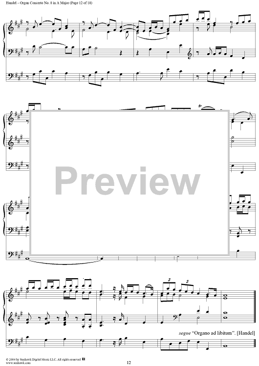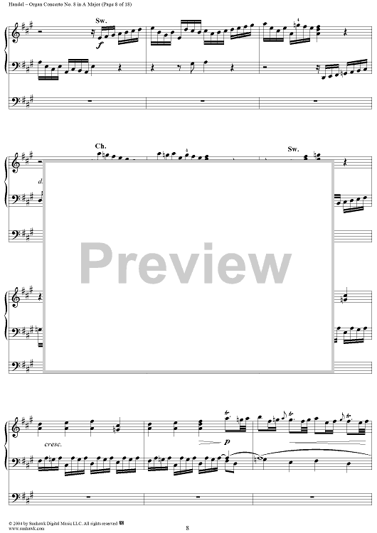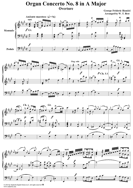 Digital Sheet Music for Organ Concerto No. 8 in A Major by George Frideric Handel, William Thomas Best scored for Organ Solo; id:297699