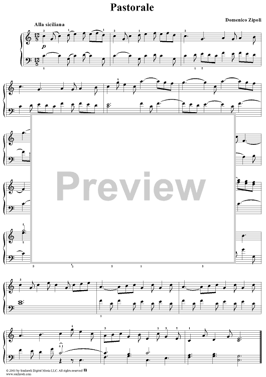 Digital Sheet Music for Pastorale in C Major by Domenico Zipoli scored for Piano Solo; id:294848