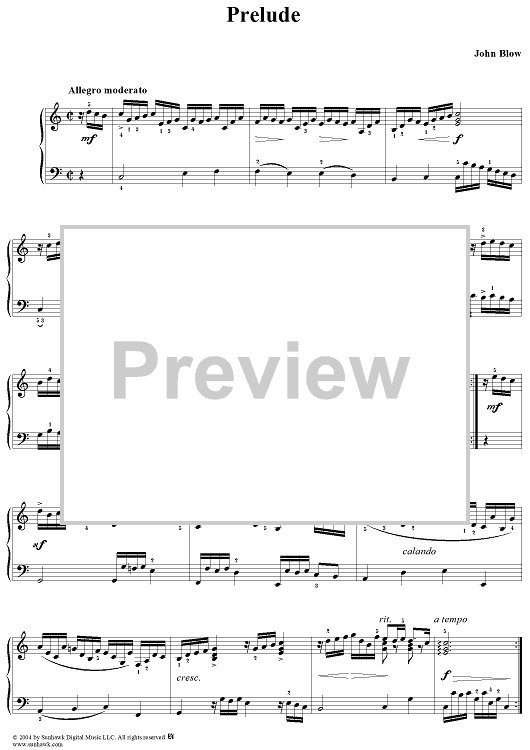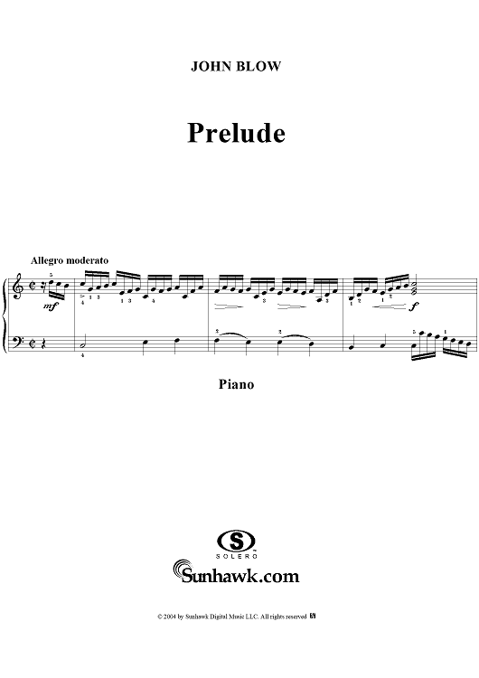 Digital Sheet Music for Prelude by John Blow scored for Piano Solo; id:295782