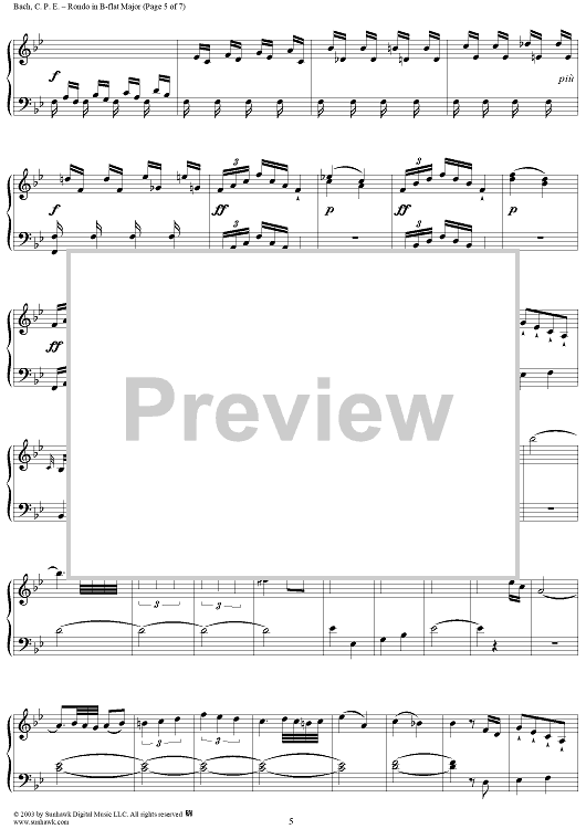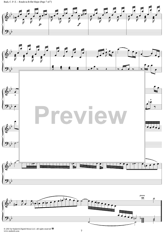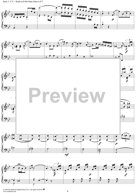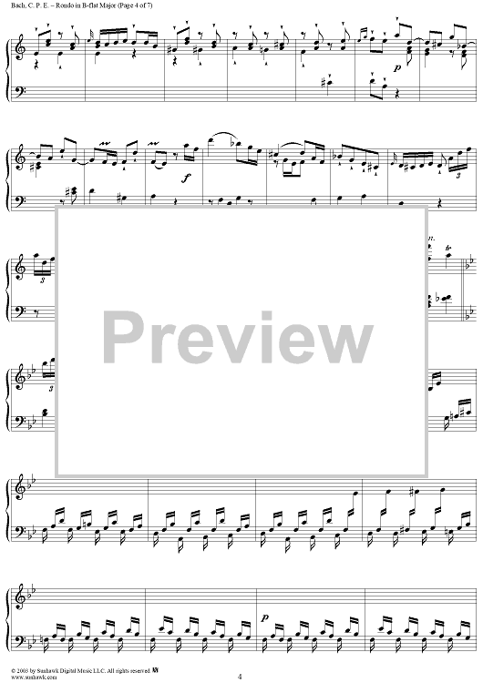 Digital Sheet Music for Rondo in B-flat Major (1783) by Carl Philipp Emanuel Bach scored for Piano Solo; id:294316