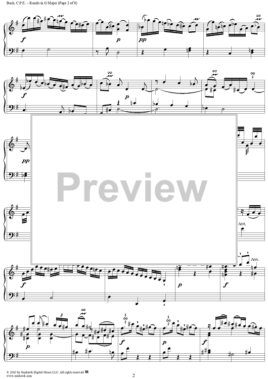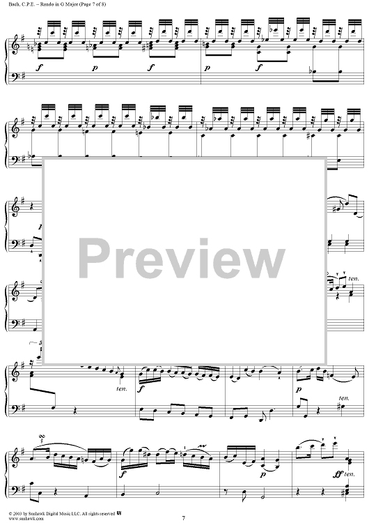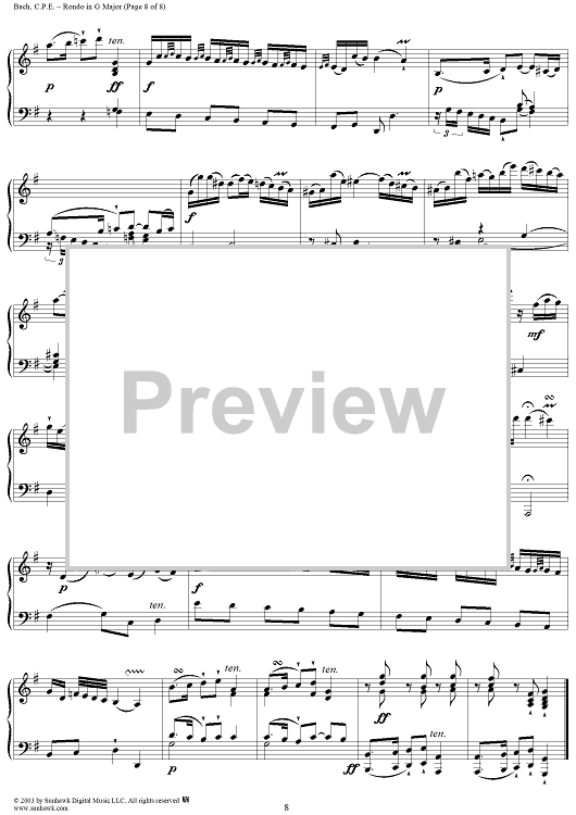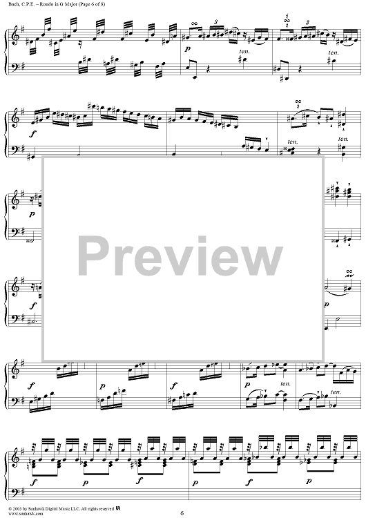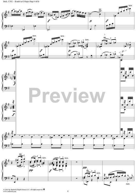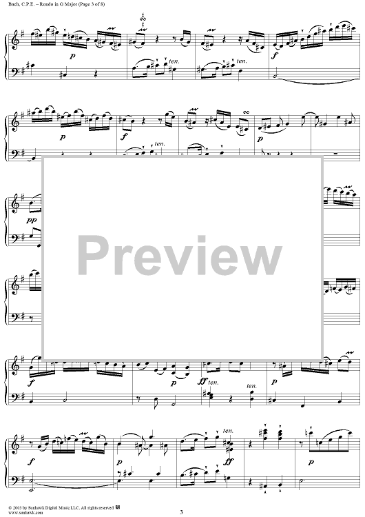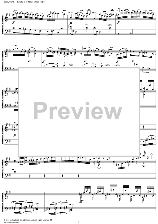 Digital Sheet Music for Rondo in G Major (1785) by Carl Philipp Emanuel Bach scored for Piano Solo; id:294320