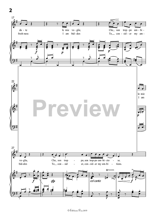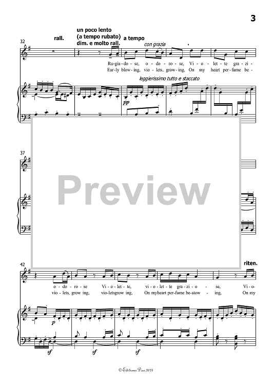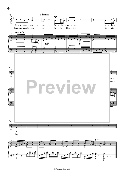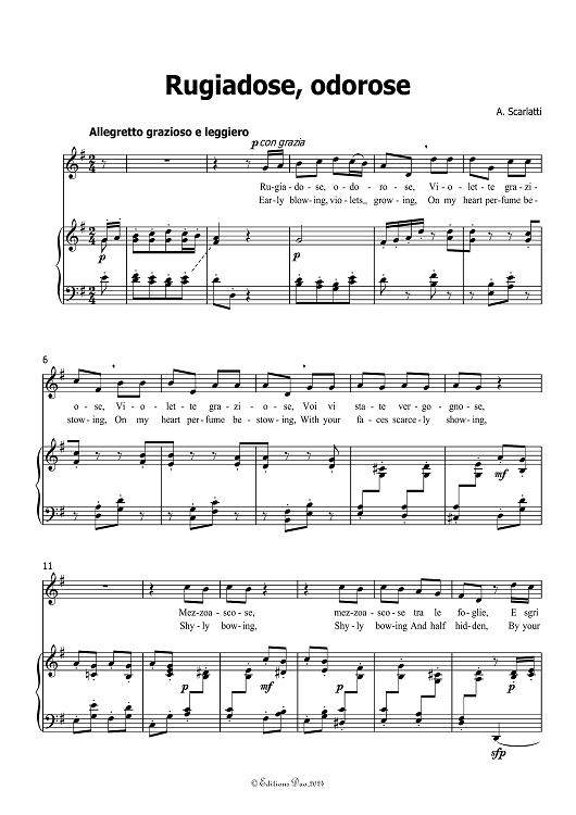 "Rugiadose, odorose" in G Major, for Voice and Piano