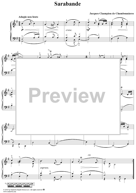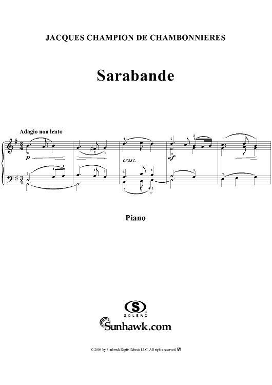 Digital Sheet Music for Sarabande by Jacques Champion de Chambonnières scored for Piano Solo; id:295676