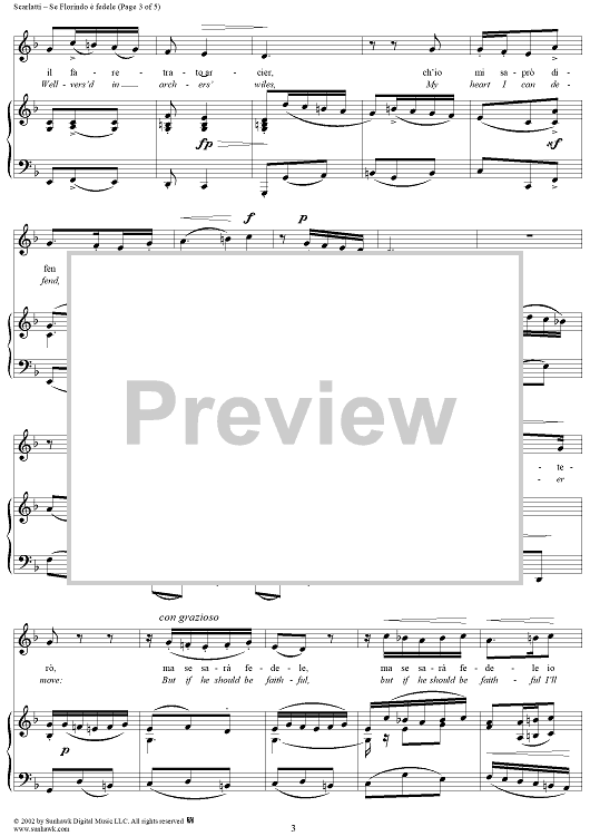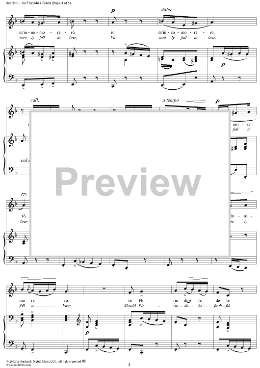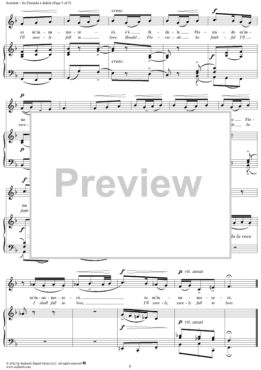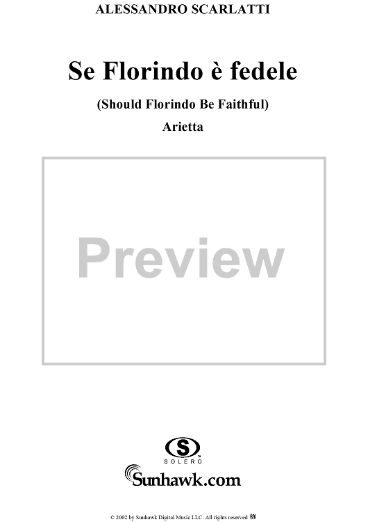 Digital Sheet Music for Se Florindo è Fedele by Alessandro Scarlatti scored for Voice/Piano; id:257010
