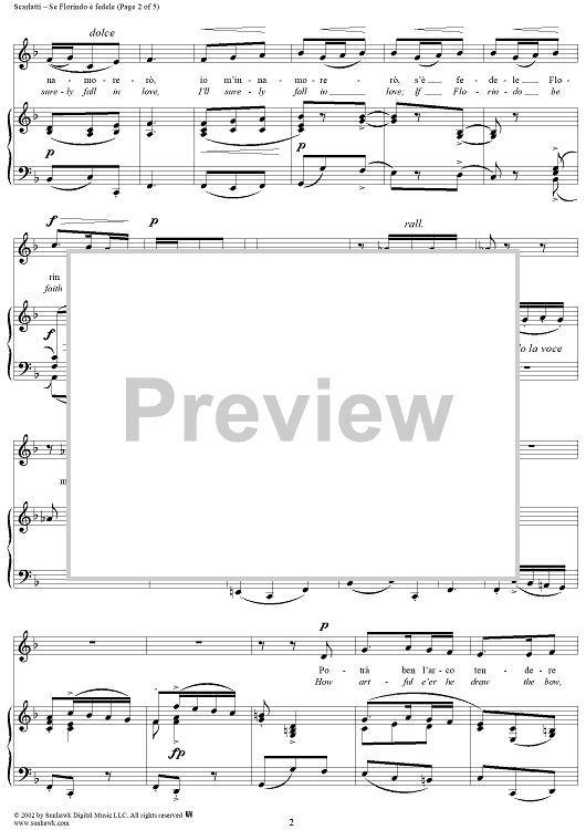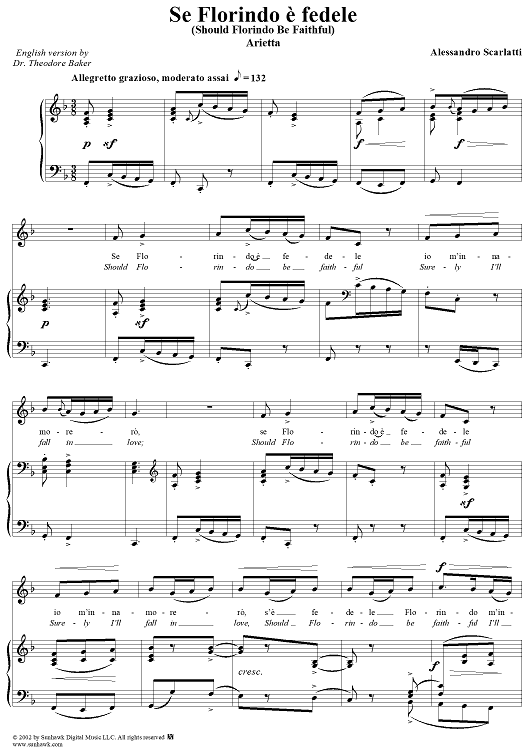 "Se Florindo è Fedele" Sheet Music by Alessandro Scarlatti