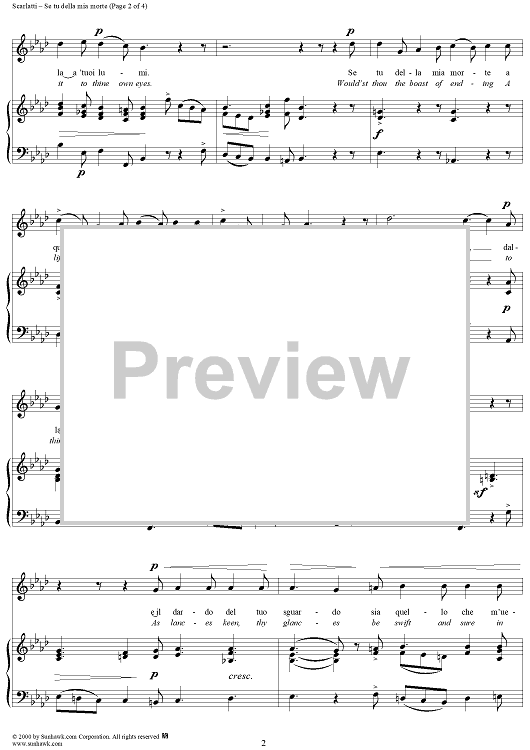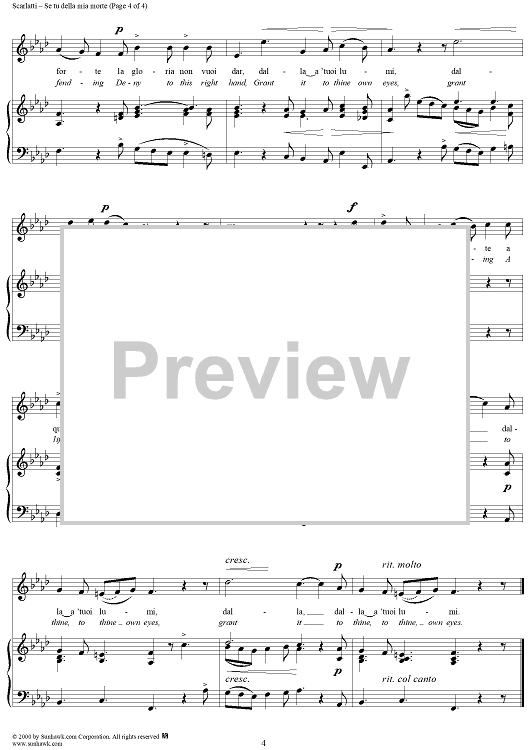 "Se tu della mia morte" Sheet Music by Alessandro Scarlatti