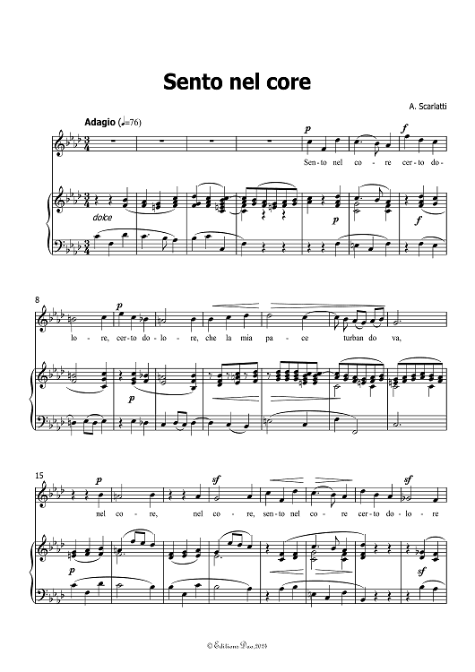 "Sento nel core" Sheet Music by Alessandro Scarlatti