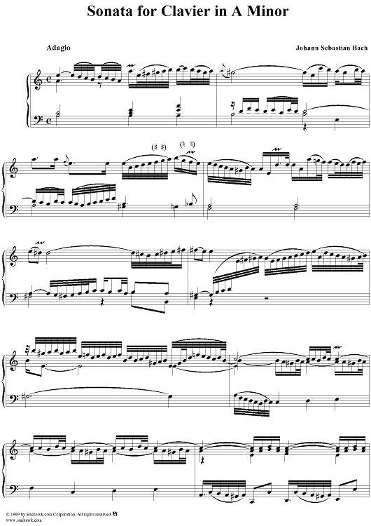 "Sonata for Clavier in A Minor, BWV965" Sheet Music by Johann Sebastian Bach