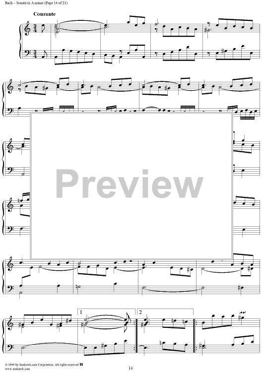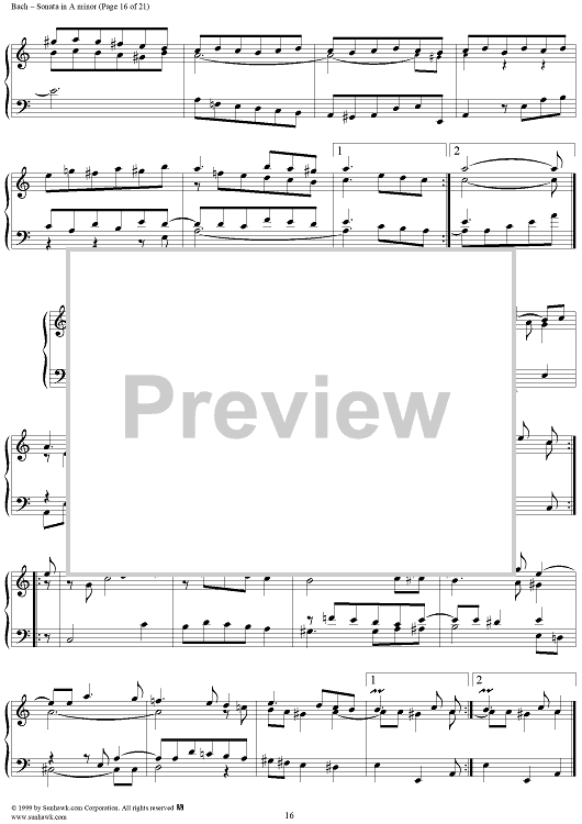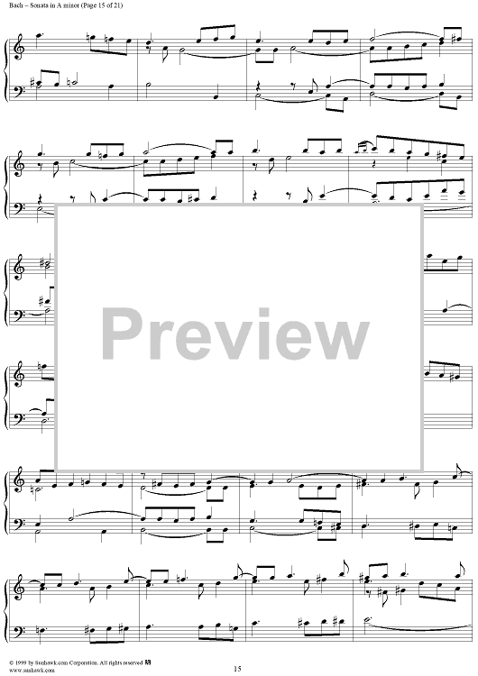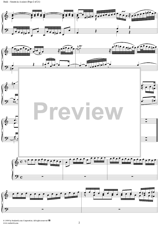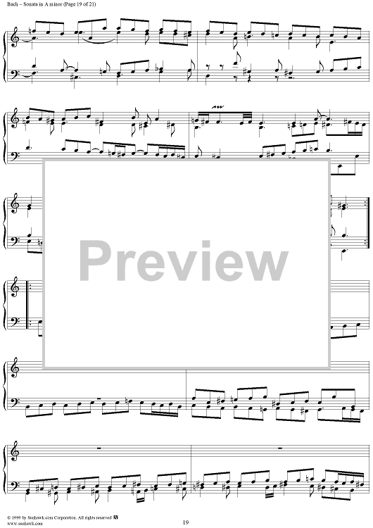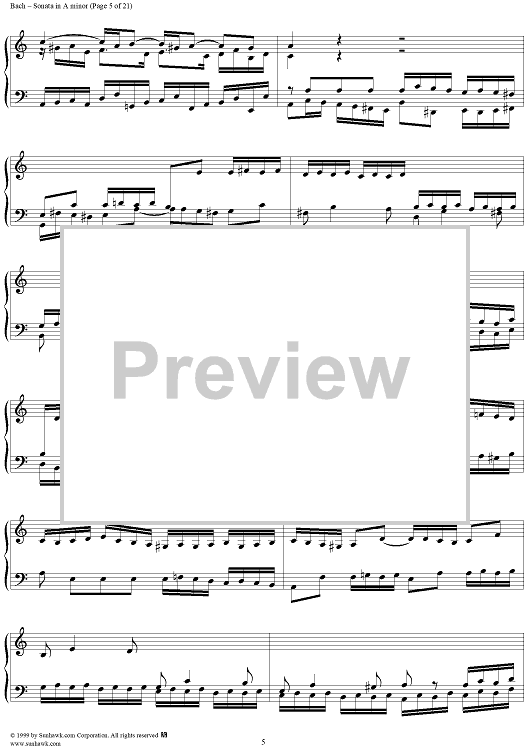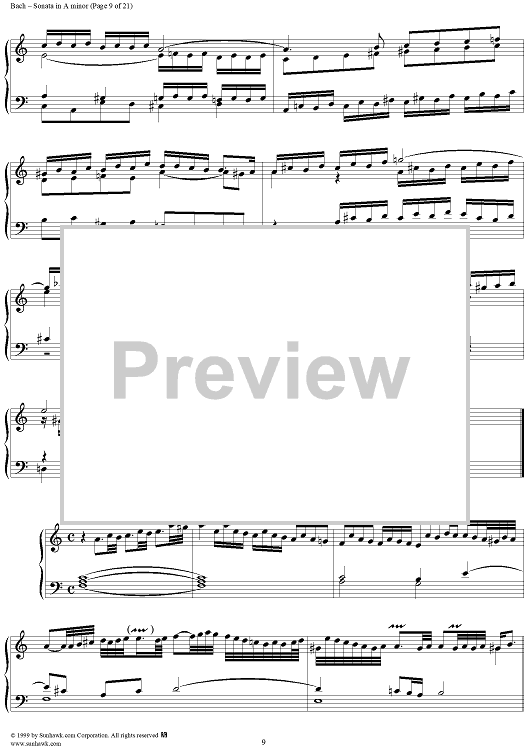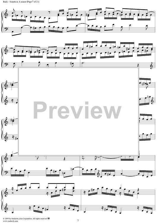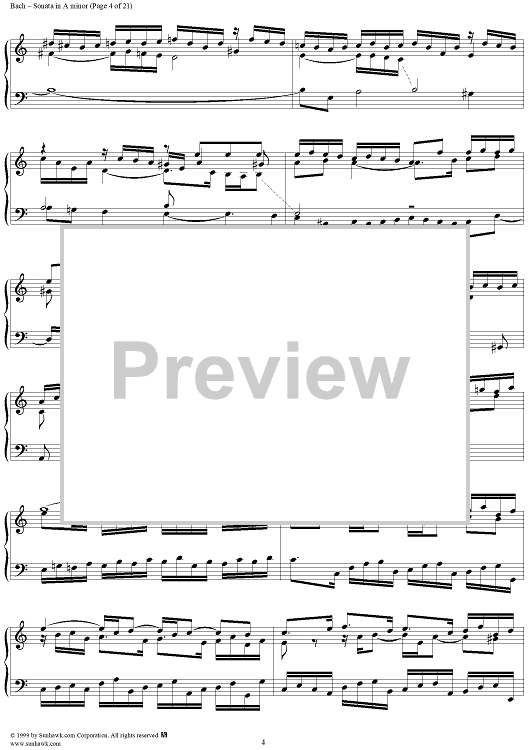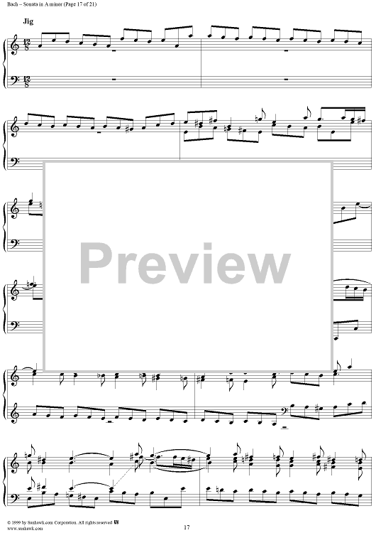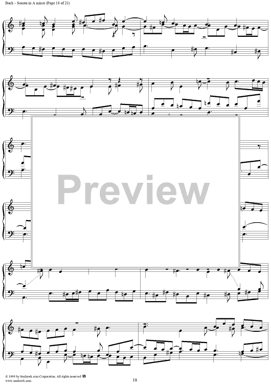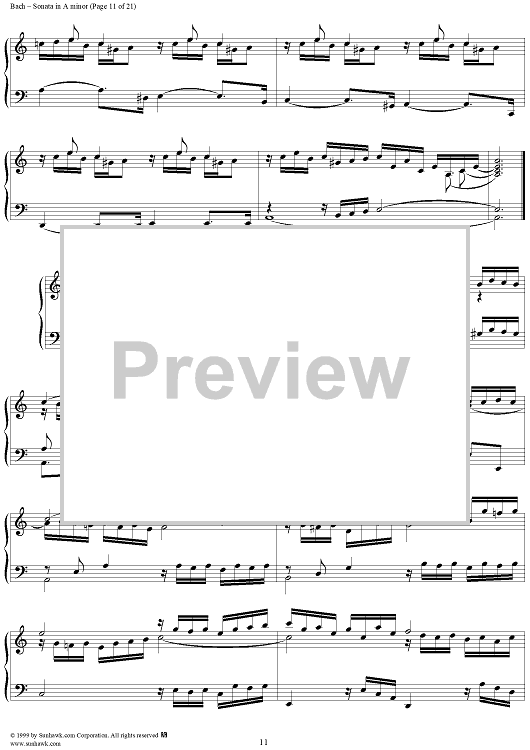 Digital Sheet Music for Sonata for Clavier in A Minor, BWV965 by Johann Sebastian Bach scored for Piano Solo; id:276279