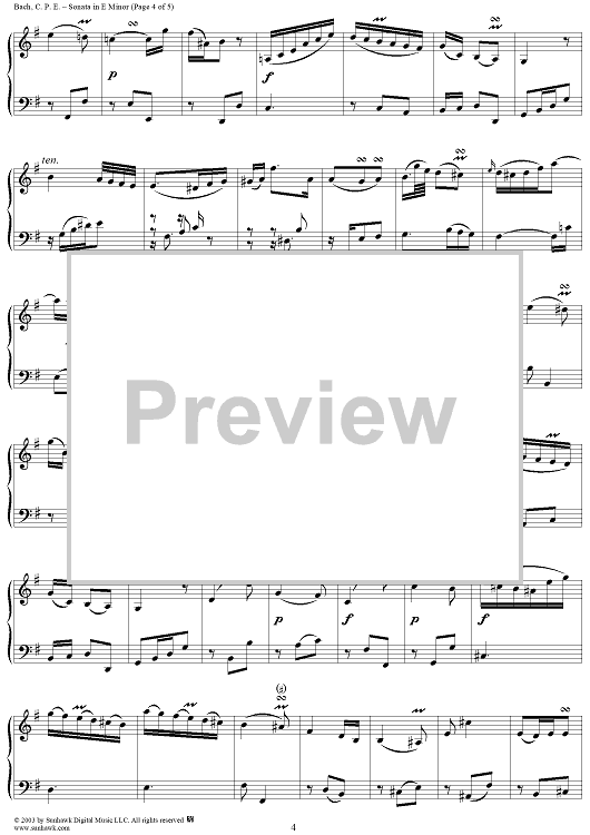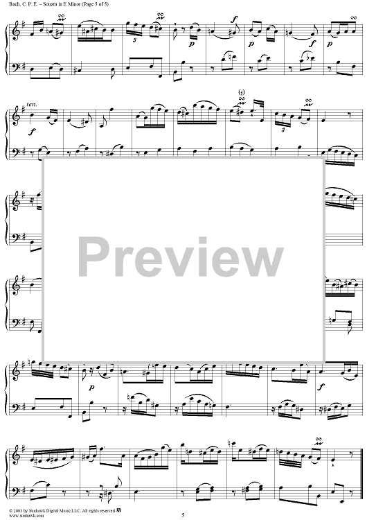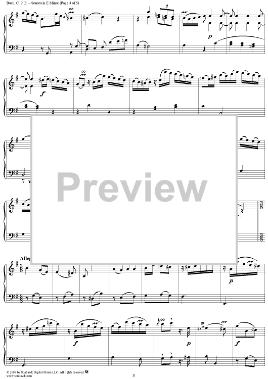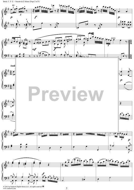 Digital Sheet Music for Sonata in E Minor (1787) by Carl Philipp Emanuel Bach scored for Piano Solo; id:294329