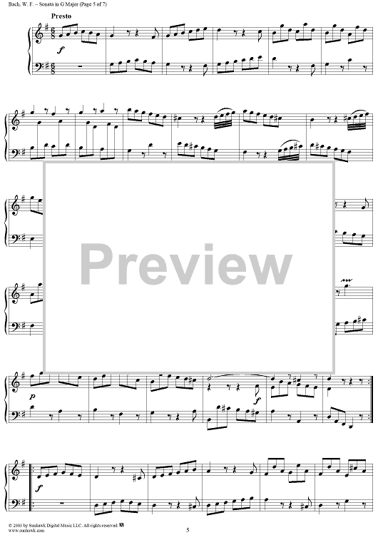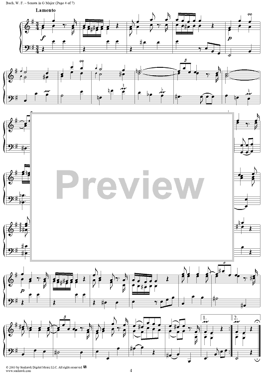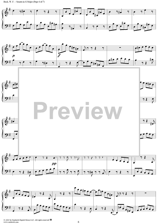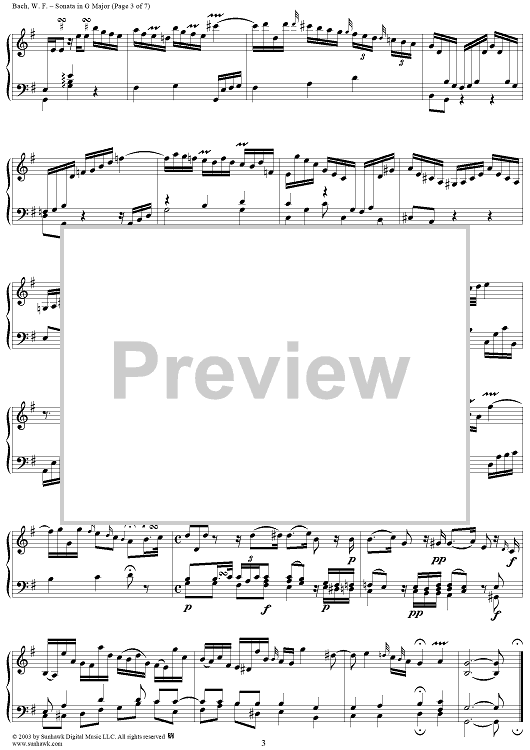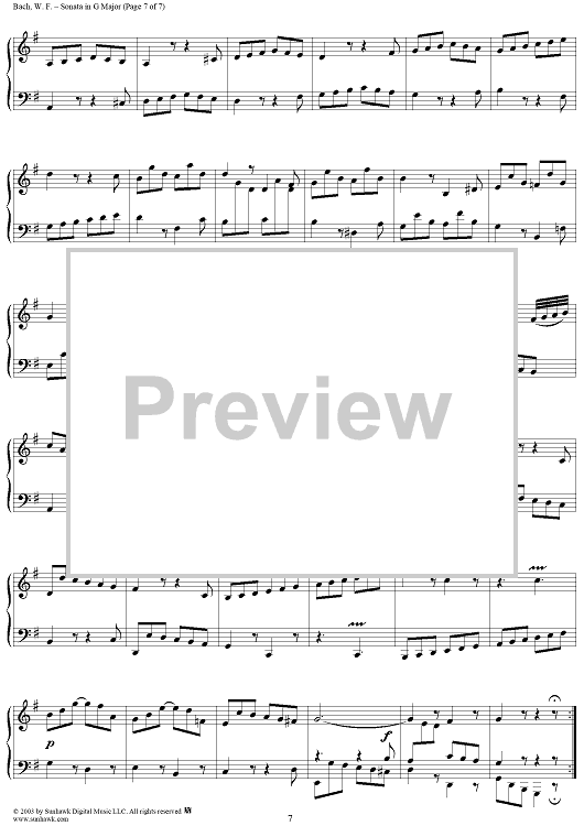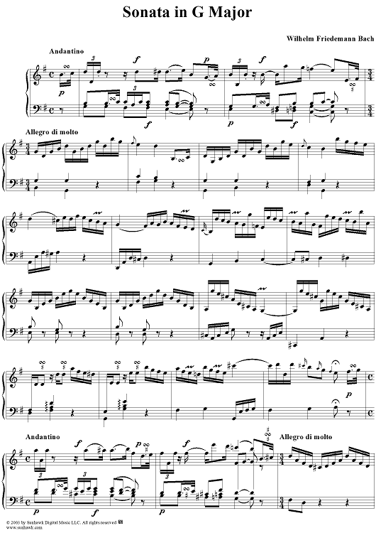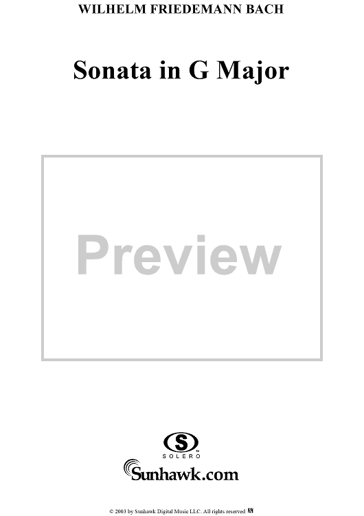 Digital Sheet Music for Sonata No. 1 in G Major by Wilhelm Friedemann Bach scored for Piano Solo; id:294309