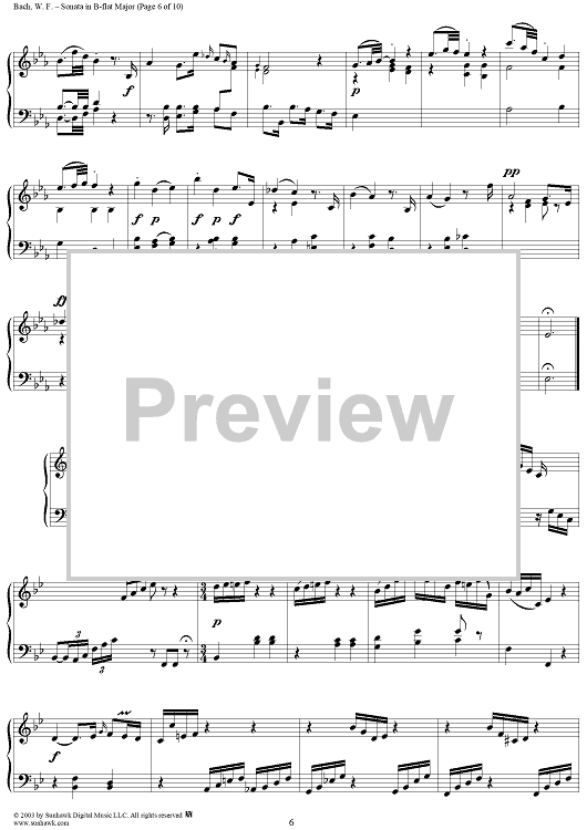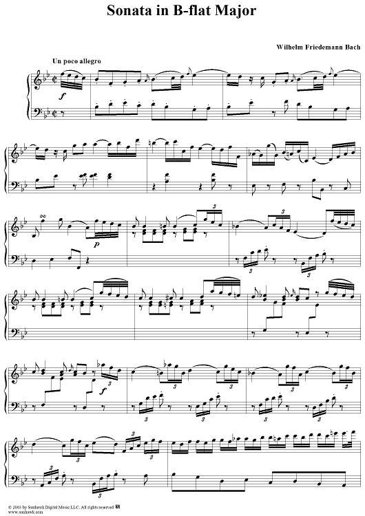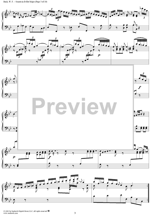 Digital Sheet Music for Sonata No. 3 in B-flat Major by Wilhelm Friedemann Bach scored for Piano Solo; id:294311
