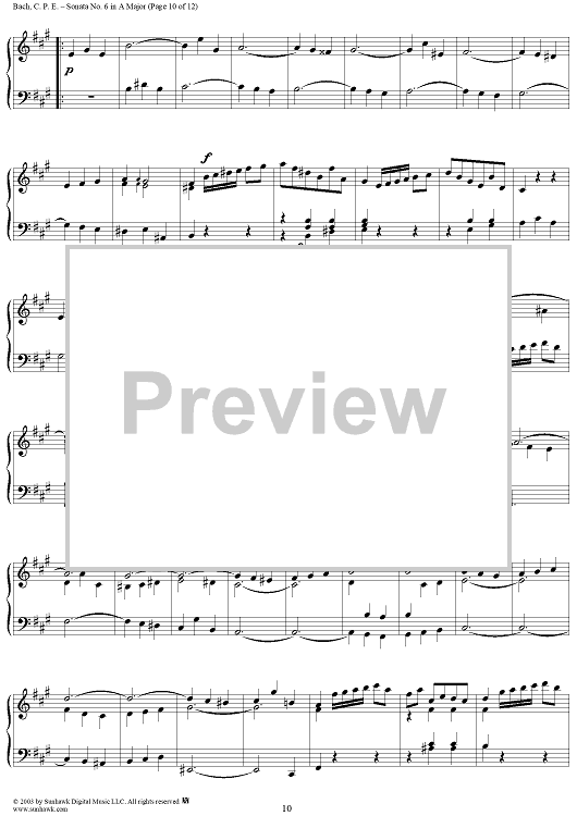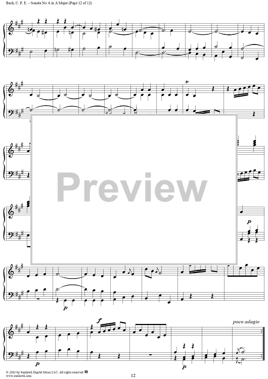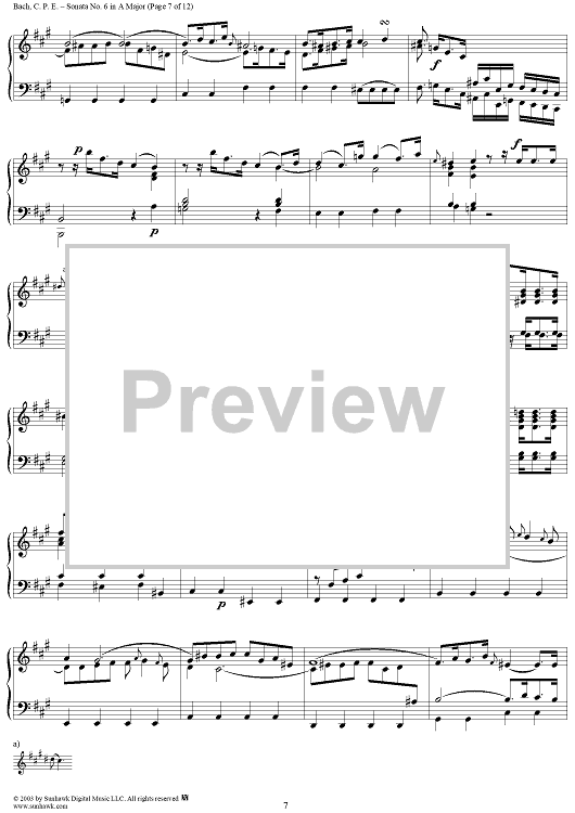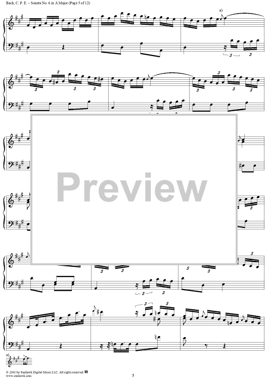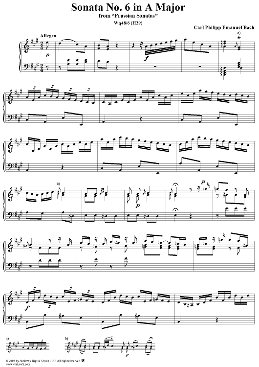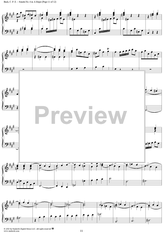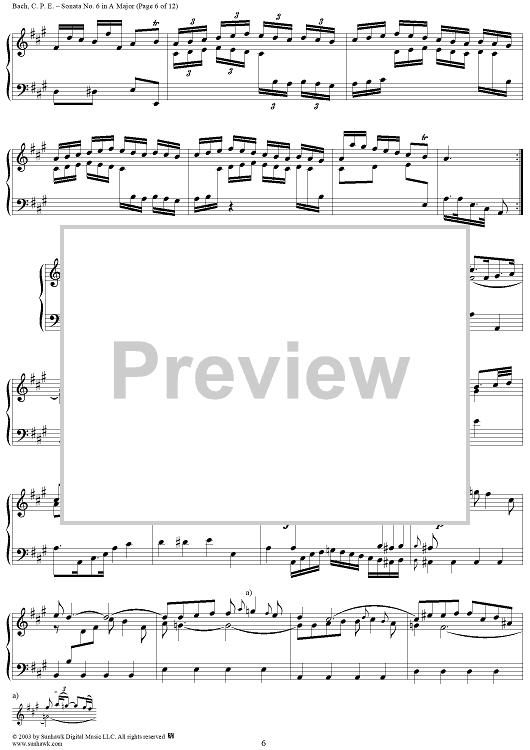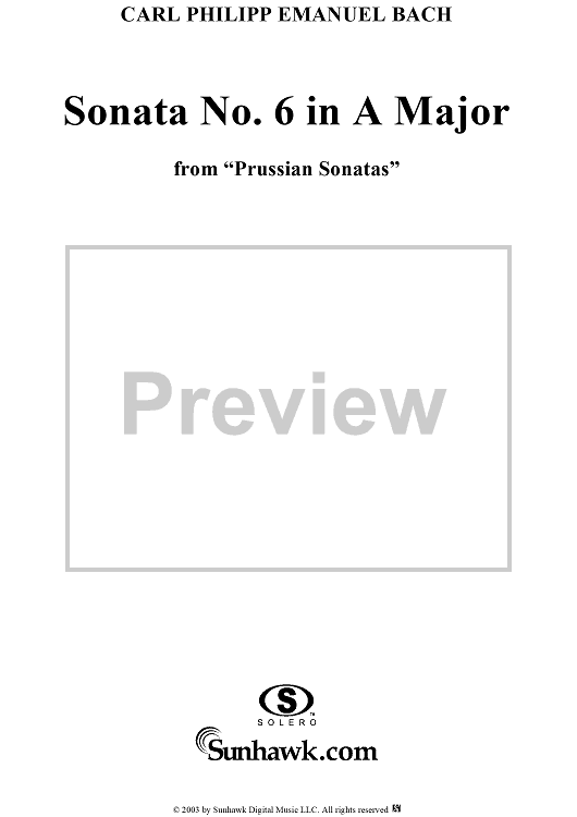 Digital Sheet Music for Sonata No. 6 in A Major by Carl Philipp Emanuel Bach scored for Piano Solo; id:293699