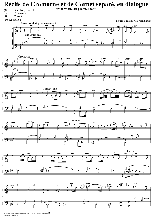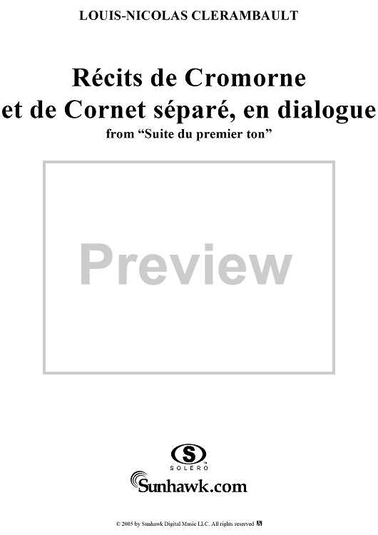 Digital Sheet Music for Suite du premier ton: Récits de Cromorne et de Cornet séparé, en dialogue by Louis-Nicolas Clerambault scored for Organ Solo; id:305904