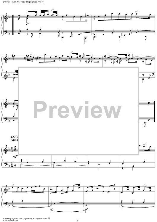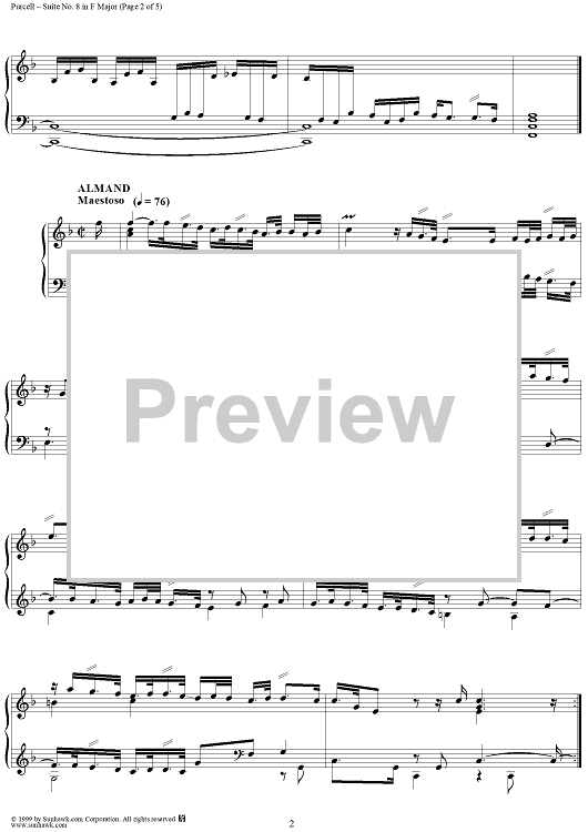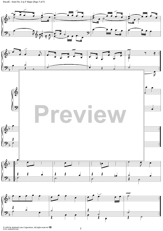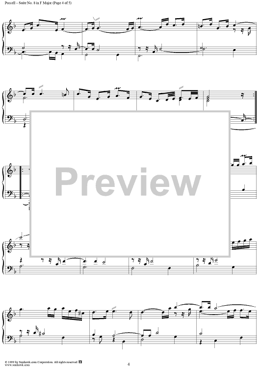 Digital Sheet Music for Suite No. 8 in F Major by Henry Purcell scored for Piano Solo; id:255067