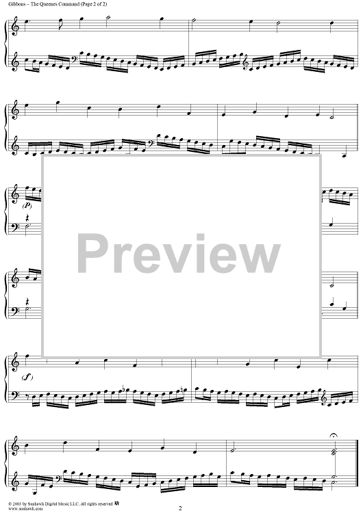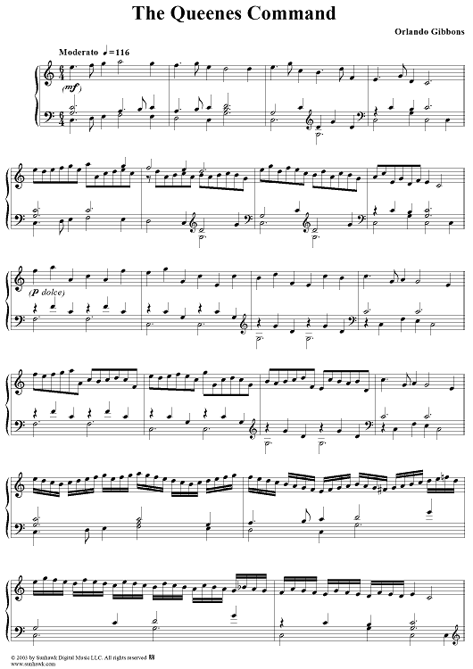 Digital Sheet Music for The Queenes Command in C by Orlando Gibbons scored for Piano Solo; id:294249