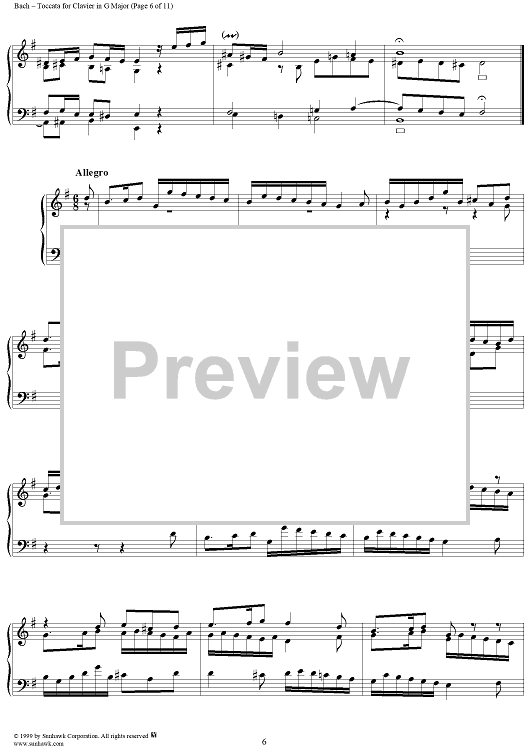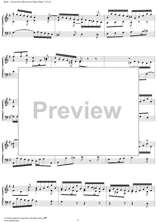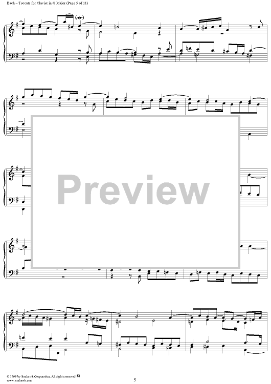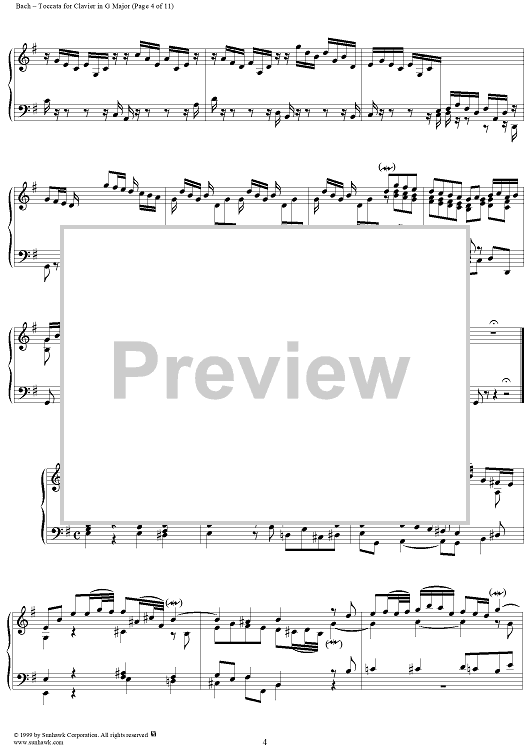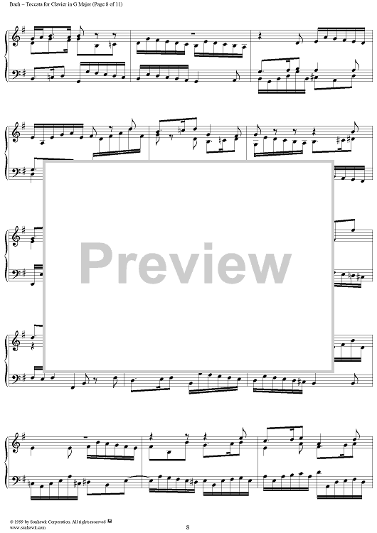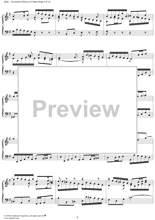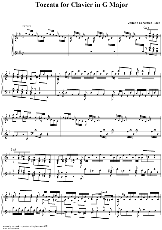 Digital Sheet Music for Toccata for Clavier in G Major, BWV 916 by Johann Sebastian Bach scored for Piano Solo; id:276098