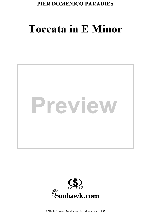 Digital Sheet Music for Toccata in E Minor by Pietro Domenico Paradies scored for Piano Solo; id:295655