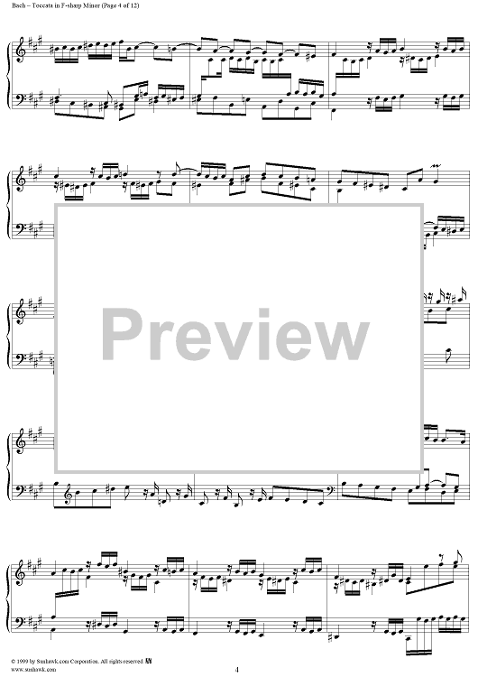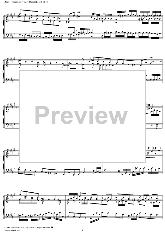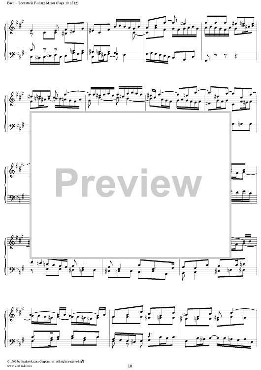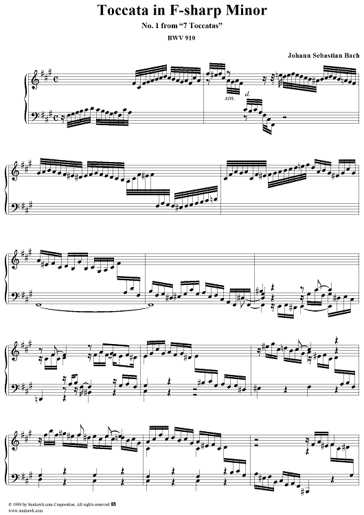 Digital Sheet Music for Toccata in F-sharp Minor, BWV910 by Johann Sebastian Bach scored for Piano Solo; id:119062