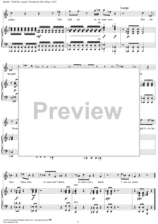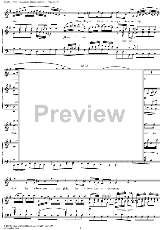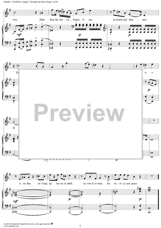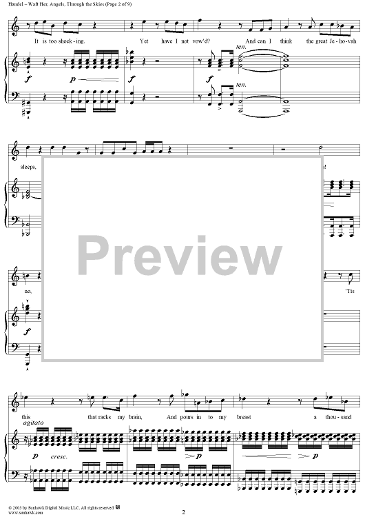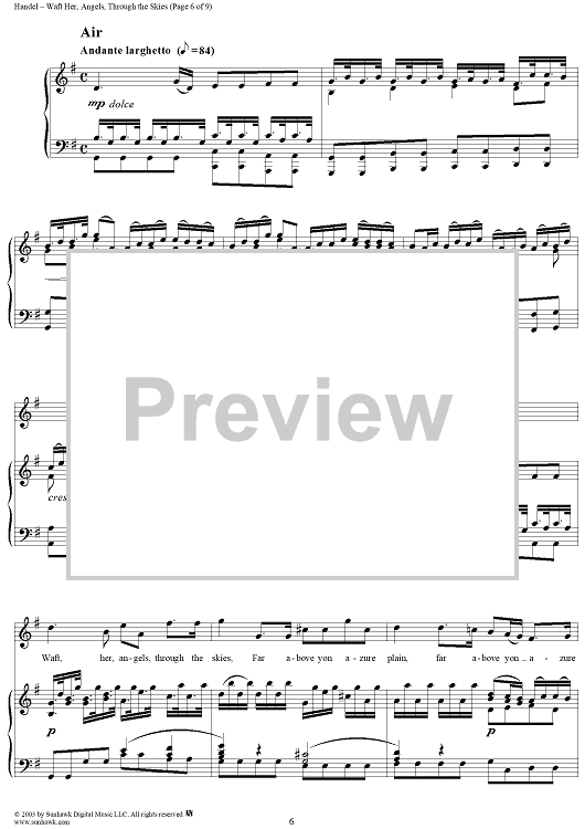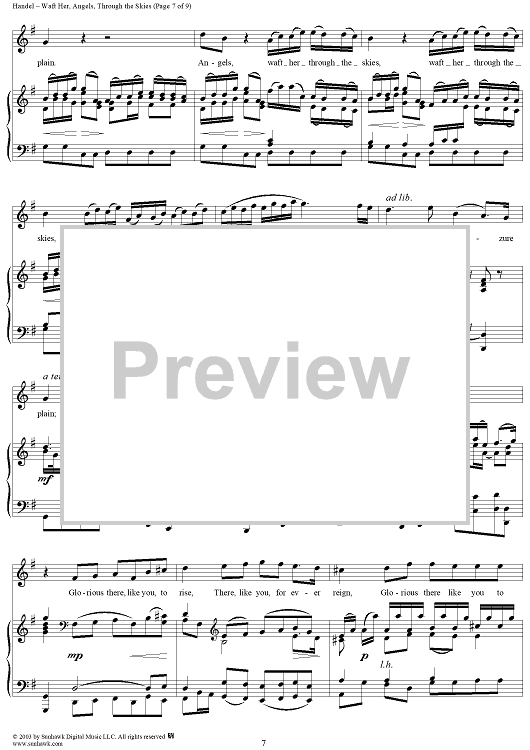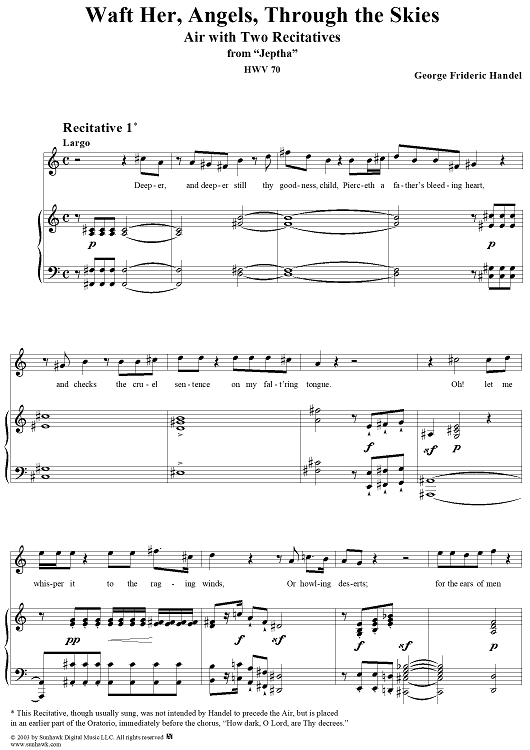 Digital Sheet Music for Waft Her, Angels, Through the Skies by George Frideric Handel scored for Voice/Piano; id:260312