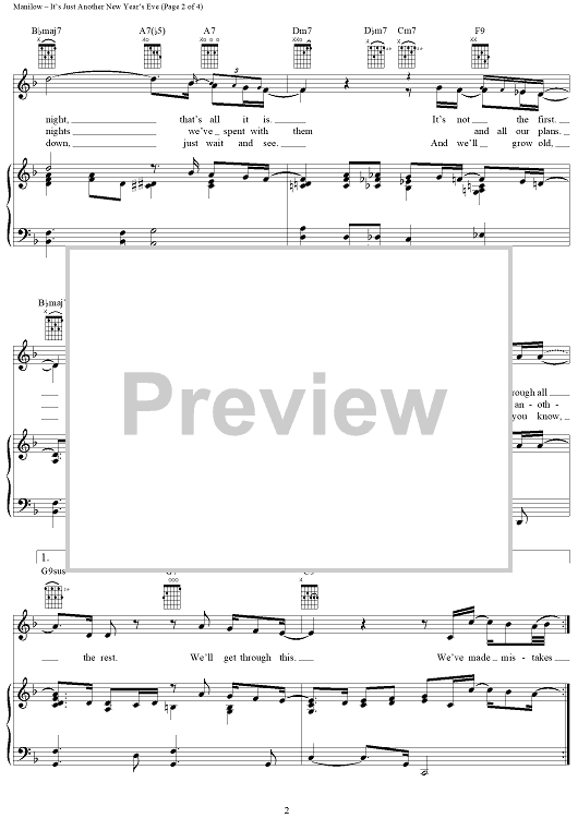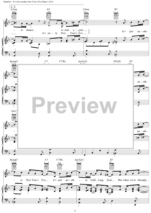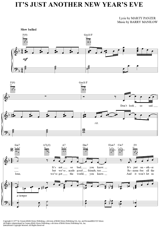 Digital Sheet Music for It's Just Another New Year's Eve by Barry Manilow, Marty Panzer scored for Piano/Vocal/Chords; id:366903