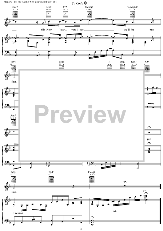 "It's Just Another New Year's Eve" Sheet Music by Barry Manilow
