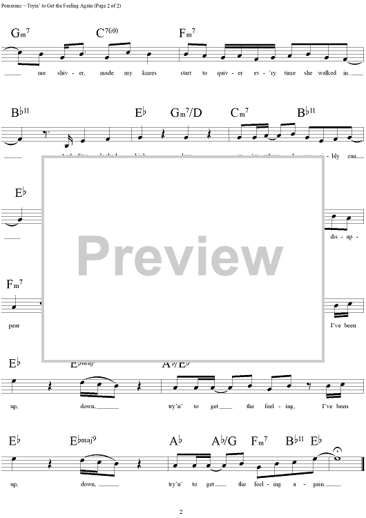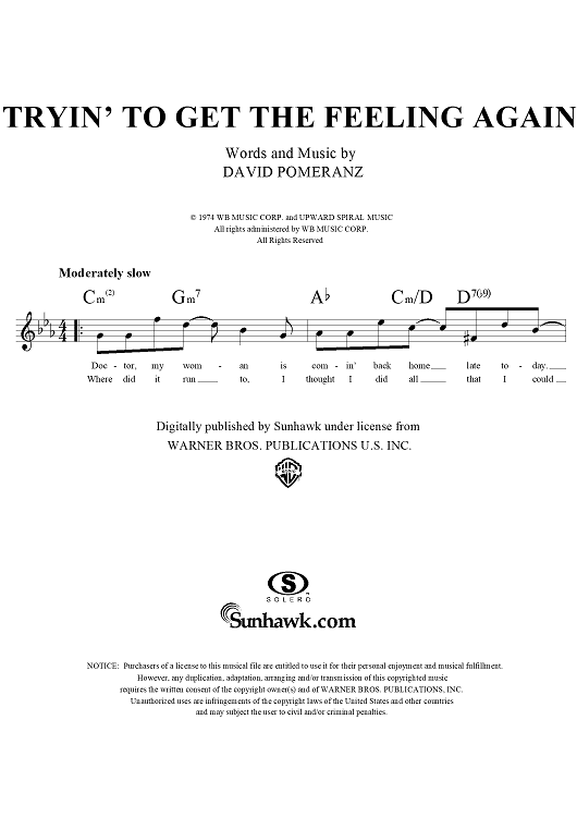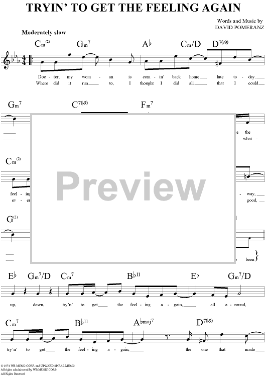 Digital Sheet Music for Tryin' to Get the Feeling Again by Barry Manilow, David Pomeranz scored for Lead Sheet; id:120622
