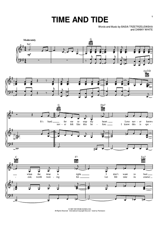 Digital Sheet Music for Time And Tide by Basia, Basia Trzetrzelewska, Danny White scored for Piano/Vocal/Chords; id:368785