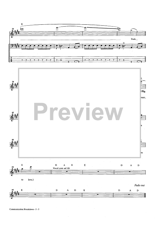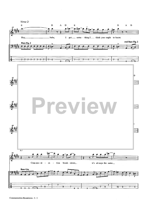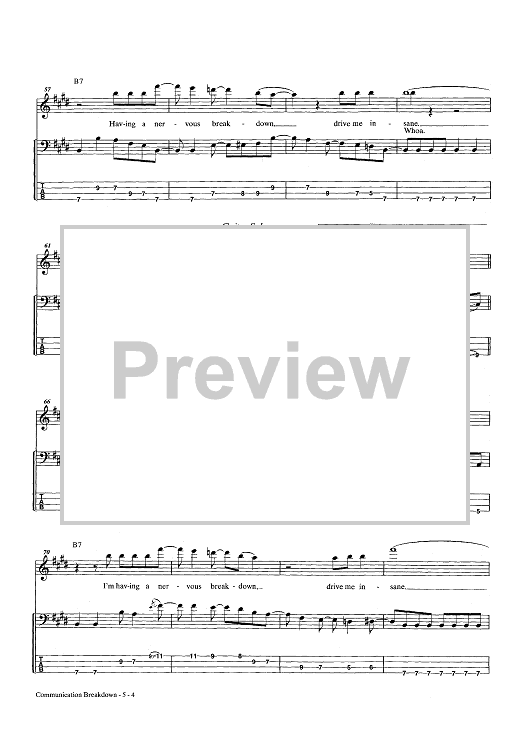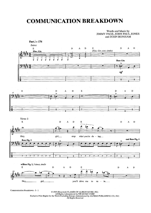 Digital Sheet Music for Communication Breakdown by Jimmy Page, John Paul Jones, John Bonham, Led Zeppelin scored for Bass Tab; id:443889