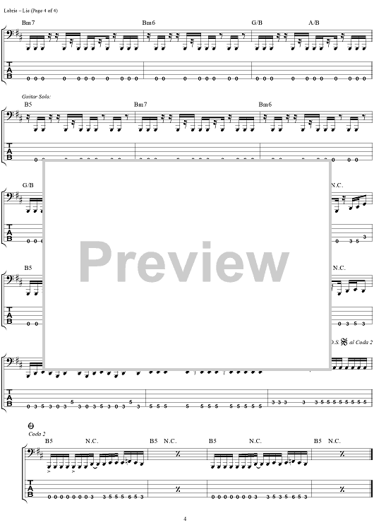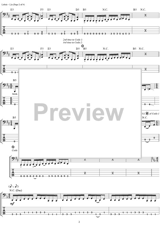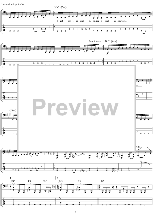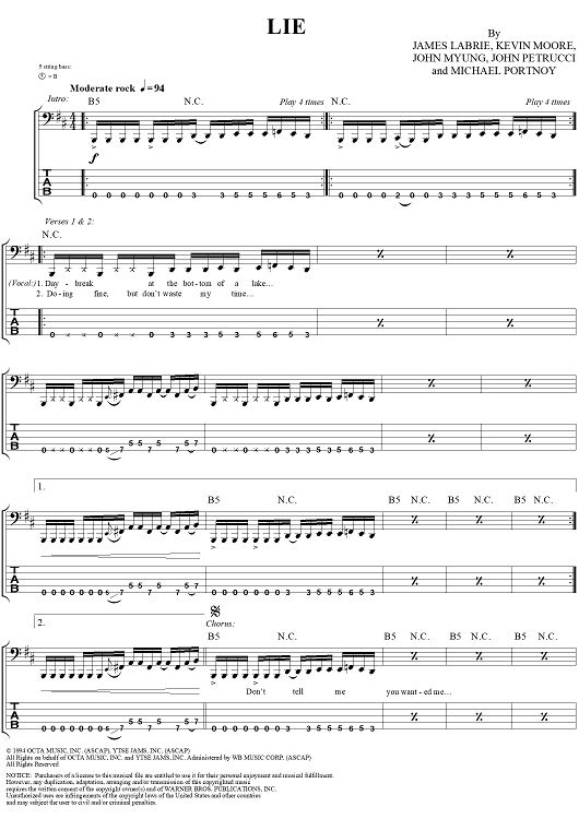 Digital Sheet Music for Lie by John Myung, Michael Portnoy, Dream Theater, John Petrucci, Kevin Moore, James LaBrie scored for Bass Tab; id:284980