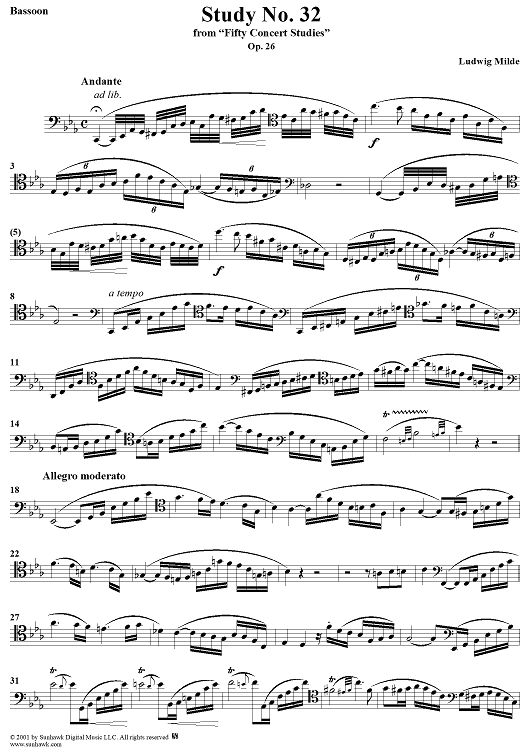 Digital Sheet Music for Concert Study No. 32 by Ludwig Milde scored for Bassoon; id:285633