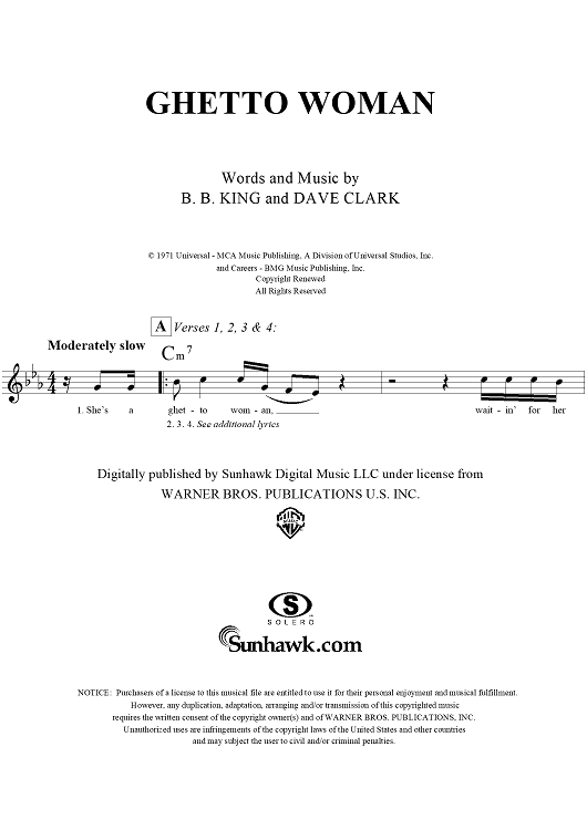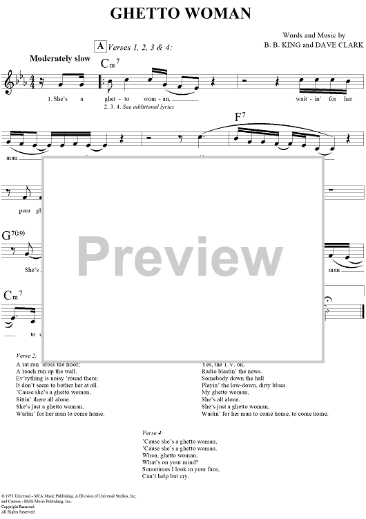 Digital Sheet Music for Ghetto Woman by B.B. King, Dave Clark scored for Lead Sheet; id:291018
