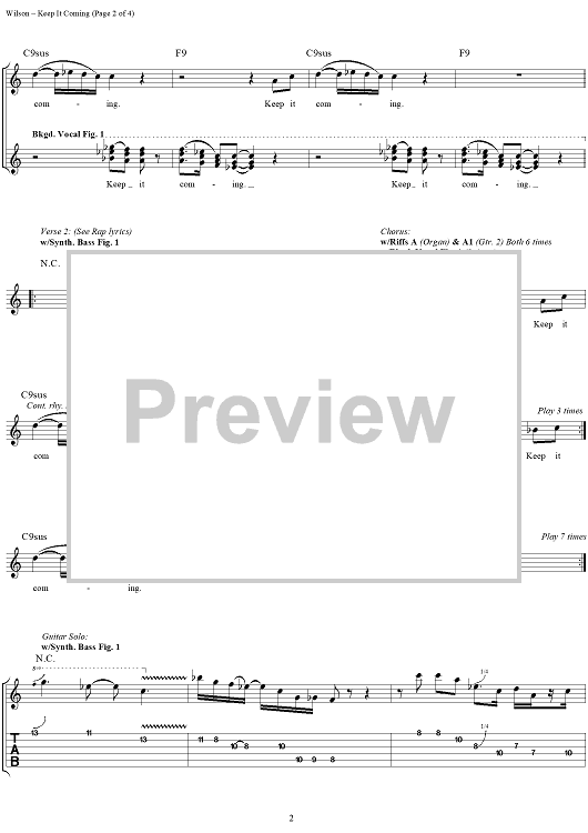Digital Sheet Music for Keep It Coming by B.B. King, Ronnie Wilson, Oliver Scott, Heavy D. scored for Guitar Tab/Vocal; id:113336
