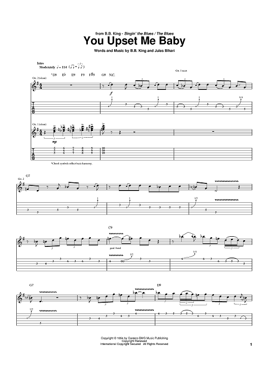 Digital Sheet Music for You Upset Me Baby by B.B. King, Jules Bihari scored for Guitar Tab; id:392433