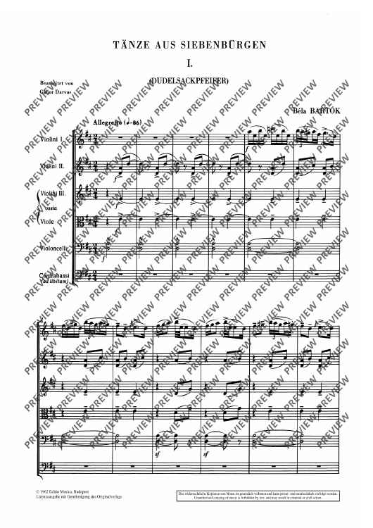 Digital Sheet Music for Dances from Transylvania - Score by Bela Bartok, Gábor Darvas scored for String Orchestra; id:499832