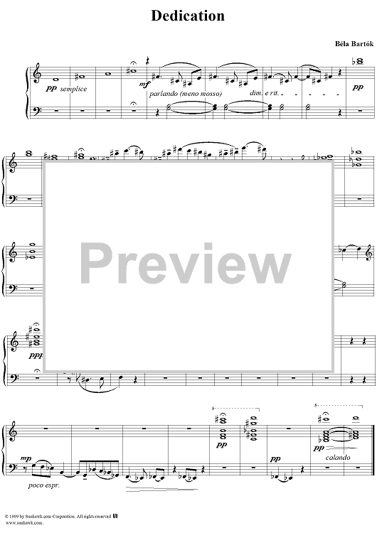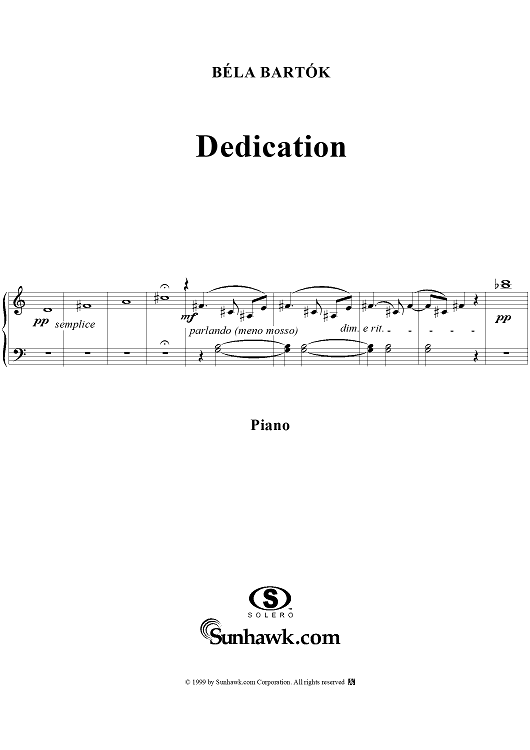 Digital Sheet Music for Dedication by Bela Bartok scored for Piano Solo; id:249874